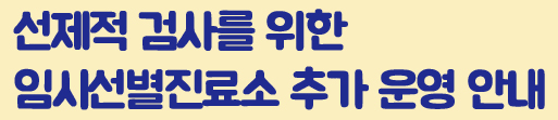 이외에도 기존의 선별진료소는 21시까지 연장운영되며 향후 자동차 이동형 선별진료소도 확대 추진할 예정입니다.